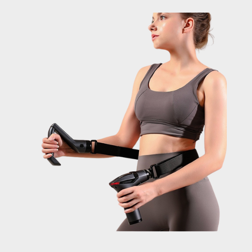 Place the massage gun or strap on the desired muscle(s) and enjoy.